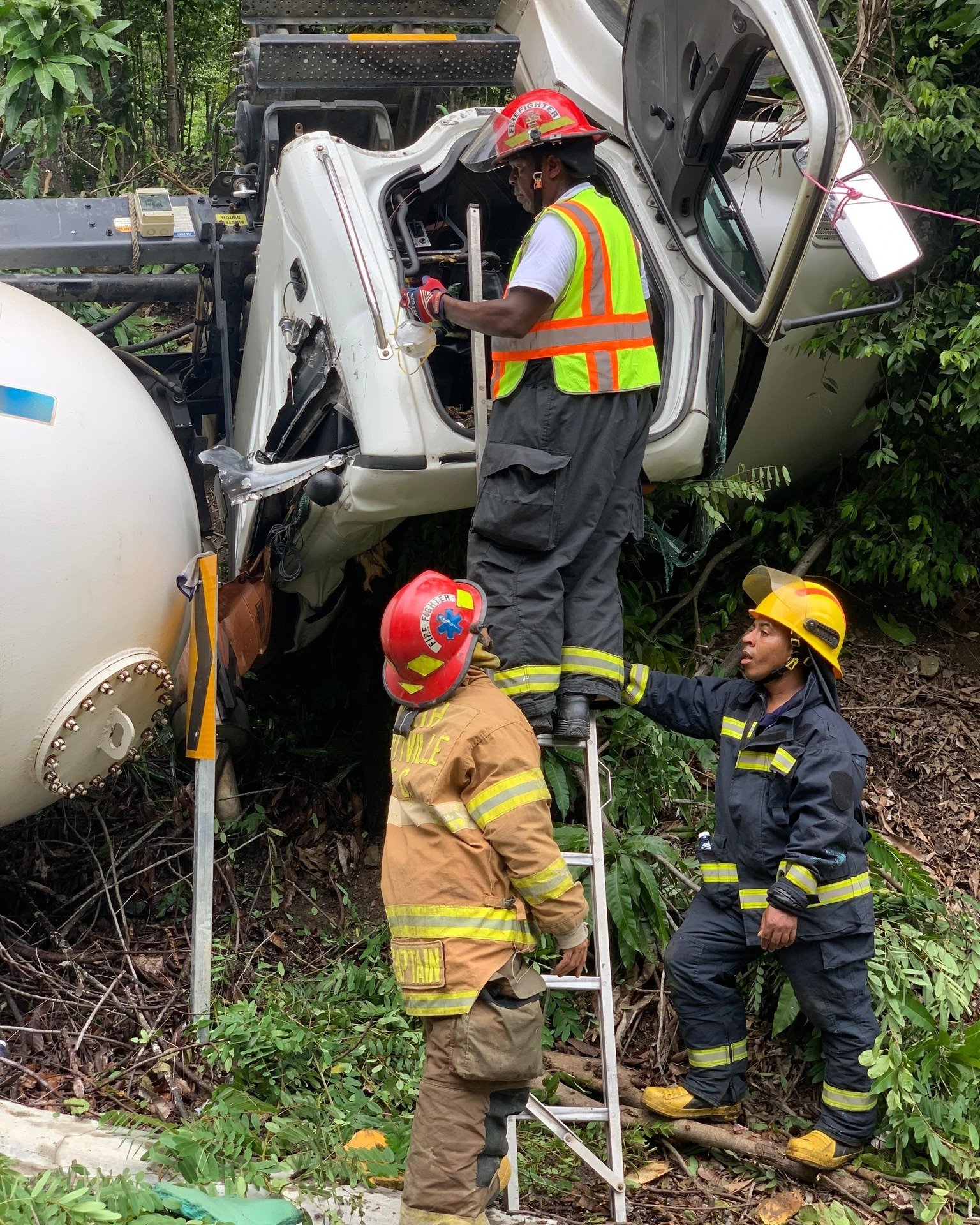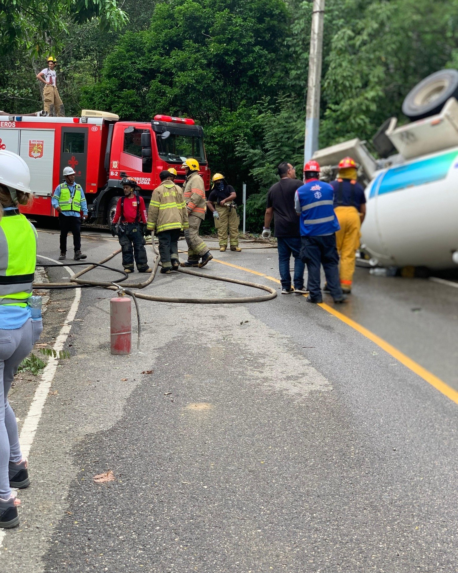 Técnicos de la empresa Transgas se integraron a las labores para controlar el combustible y asistir en la extracción segura del vehículo siniestrado, evitando así una potencial detonación de gran magnitud.