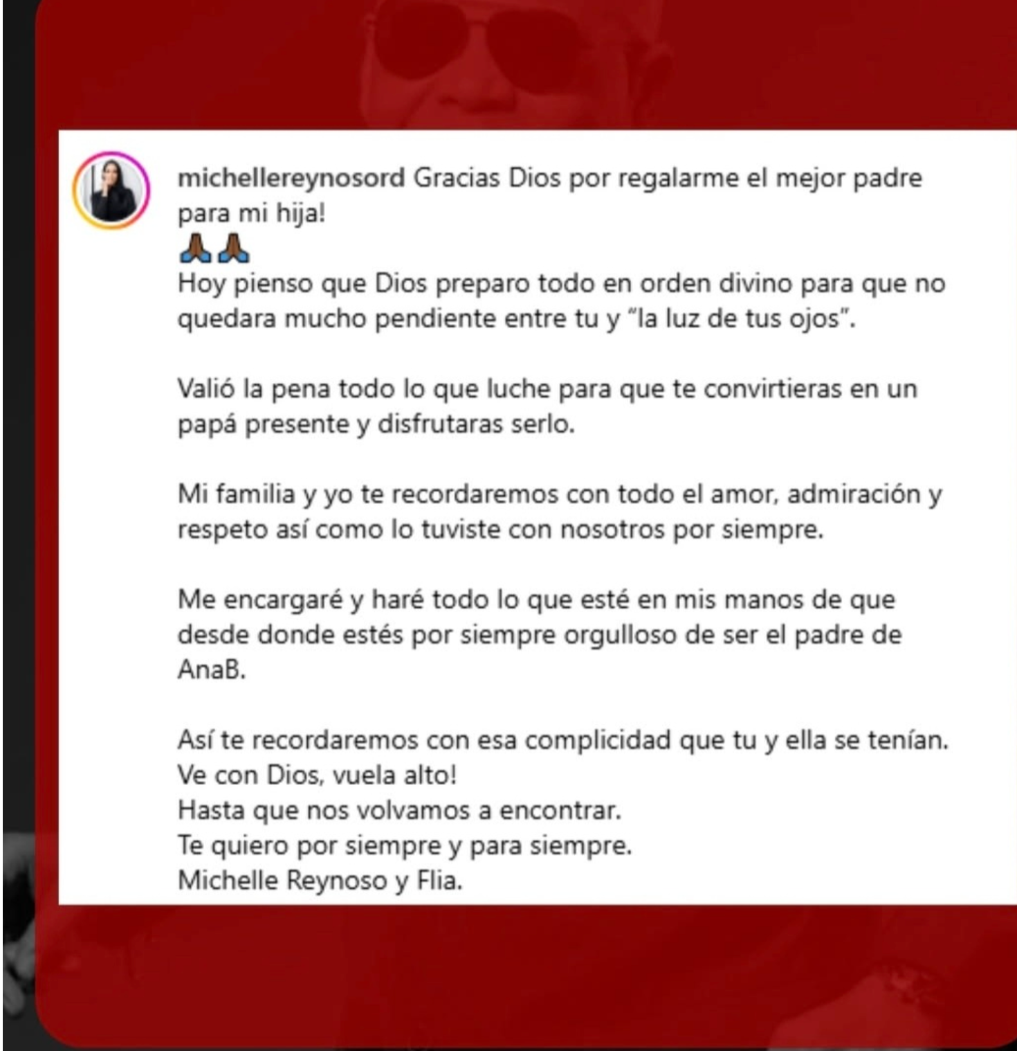 Michelle destacó la transformación personal del cantante: “Todo por lo que luché valió la pena para que te convirtieras en un padre presente”. Estas palabras confirman los testimonios de familiares que describieron al artista como un hombre comprometido con su rol de padre, especialmente en sus últimos años.